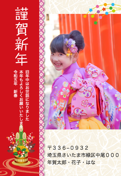新年のご挨拶にぴったりの色合いが素敵な写真フレーム年賀状です。お気に入りの一枚を是非!
