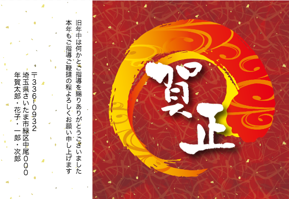 和紙のような背景に力強い印象の素敵な年賀状です。かしこまった相手にもぴったりのデザインです。