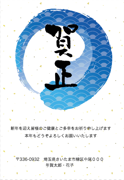 和紙のような背景に力強い印象の素敵な年賀状です。かしこまった相手にもぴったりのデザインです。