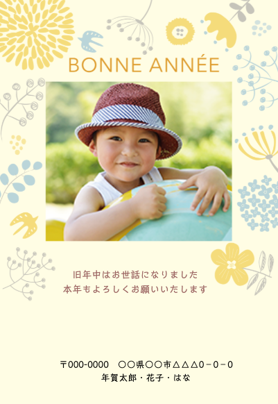 淡い色のナチュラルな印象に仕上がるテンプレートです。お気に入りの写真を一枚入れられます。