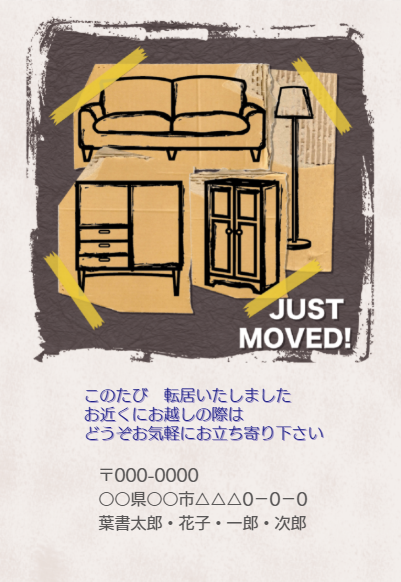 貼り付けた家具でクールに引越しを表現したテンプレートです。