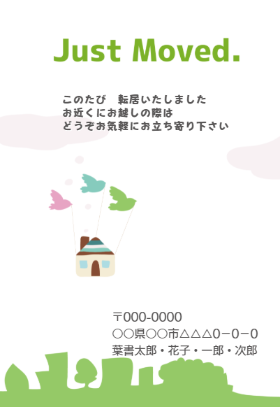 可愛い鳥たちが家を運び、引越しを連想させてくれる可愛らしいテンプレートです。