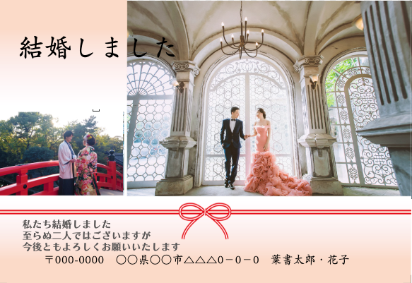 可愛らしい熨斗のデザインに大小2枚の写真を入れられます。可愛らしさの中に上品さも兼ね備えたテンプレートです。