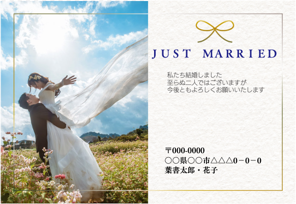 上品なゴールドのリボンの中にとっておきの写真を入れられるテンプレートです。お気に入りの一枚で素敵な一枚をデザインしてください。