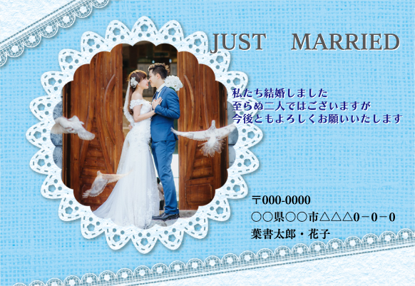 レースで縁取られた中に写真を入れられます。クールなブルーですが、可愛らしくレースで飾られたテンプレートです。