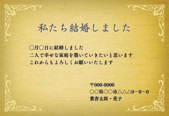 ゴールド地の中にゴージャスに縁取られたデザインのテンプレートです。落ち着いた中にキラリと個性が出せます。