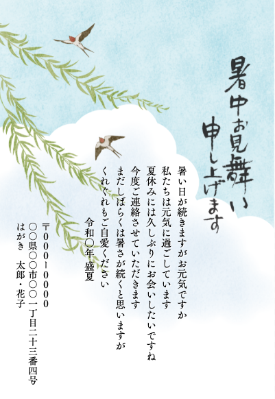 元気なつばめが飛び交い、夏の始まりを伝えてくれるテンプレートです。