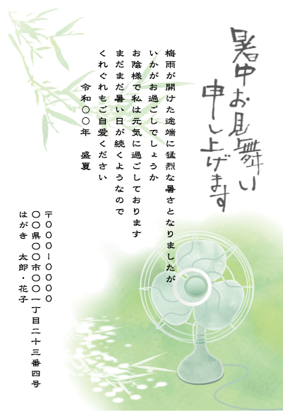 昔なつかしの形の扇風機が夏の訪れを教えてくれるテンプレートです。