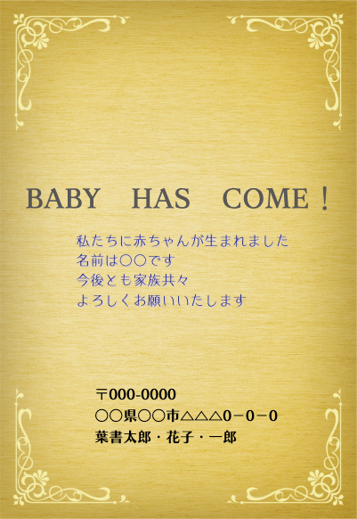 ゴールド地に額縁のようなデザインでゴージャスな印象で落ち着いた雰囲気のテンプレートです。縦型なのでスッキリとした印象に仕上がります。