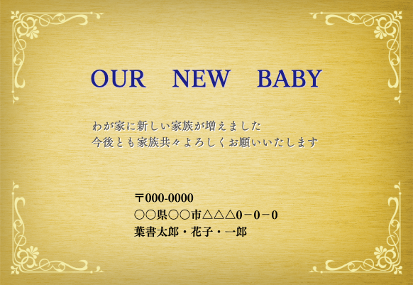 ゴールド地に額縁のようなデザインがあしらわれた落ち着いた雰囲気にのテンプレートです。