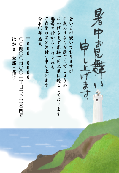 遠くに見える灯台が入道雲に映える、清々しい気分になるようなテンプレートです。