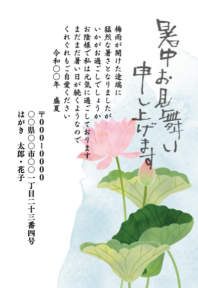 色鮮やかな蓮の花と葉が夏の訪れをお知らせしてくれるテンプレートです。