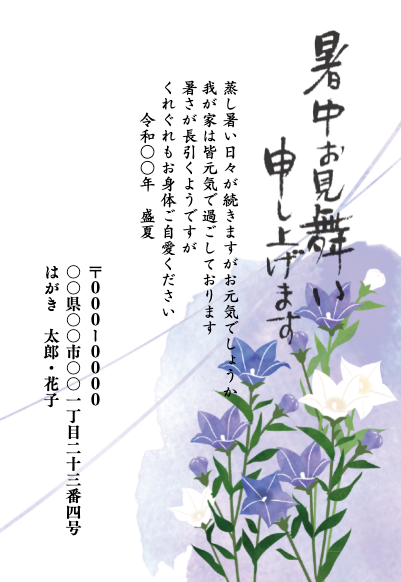 美しい桔梗が夏の日差しに負けずに力強く咲いているテンプレートです。