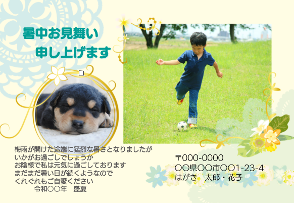 爽やかなデザインの中に写真を2枚入れられるテンプレートです。