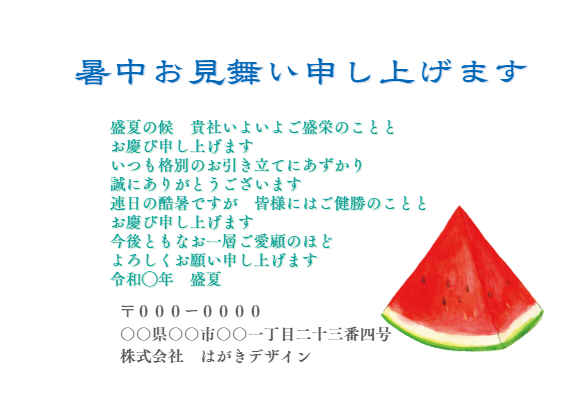 夏らしいみずみずしいスイカが美味しそうに描かれたテンプレートです。