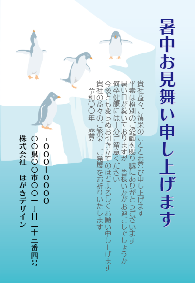 氷の上にたくさんのペンギンたちが楽しそうに遊んでいる可愛らしいテンプレートです。