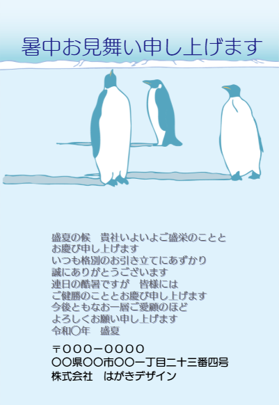 氷の上にペンギンたちが佇み、涼し気なテンプレートです。