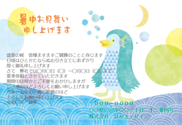 疫病封じの妖怪アマビエが可愛らしく描かれたキュートな雰囲気のテンプレートです。