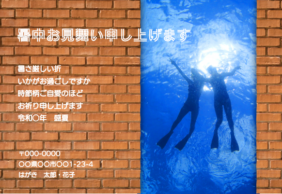 おしゃれなレンガのデザインに写真を入れられるデザインです。大きめな写真を入れられます。