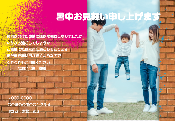 おしゃれなレンガのデザインに写真を入れられるデザインです。大きめな写真を入れられます。