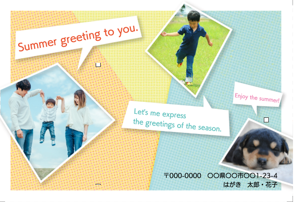 'ふち無しきれいに全面印刷。年賀状から暑中見舞い、挨拶状の印刷ならふち無しはがき印刷本舗にお任せください。