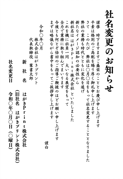 製品名:社名変更白