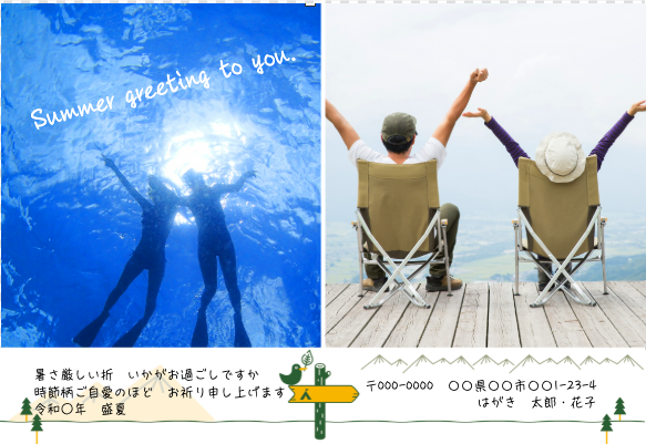 木々のワンポイントイラストが可愛らしい、シンプルな写真テンプレートです。お好みのフォントを選んで、自分好みにアレンジしてみては。