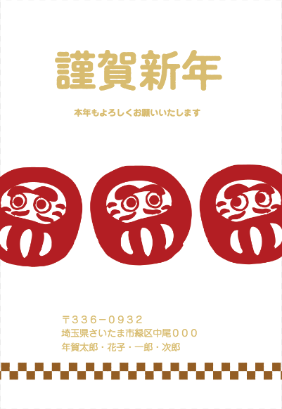 はがきデザイナーのテンプレートです。赤いだるまのポップなデザインの、シンプルな年賀状。新年のご挨拶に。