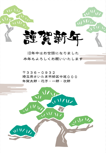 はがきデザイナーのテンプレートです。松のスッキリとしたシンプルなデザインの年賀状です。